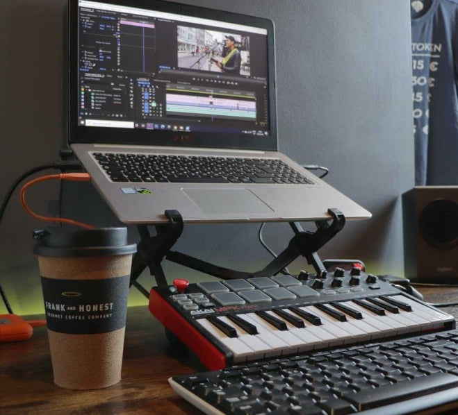 El K2 puede soportar hasta 9 kg de peso y las bases antideslizantes y los agarres en arco evitan que su computadora portátil se tambalee y minimizan la vibración. Una acción fácil y rápida abre y cierra el soporte.