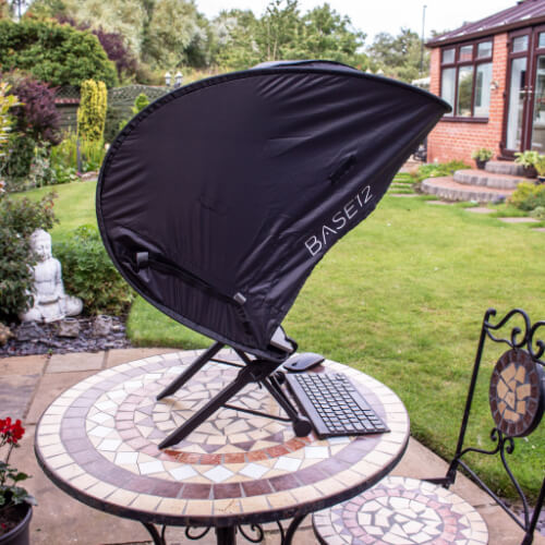 Le pare-soleil pour ordinateur portable Base12 vous permet de passer plus de temps de qualité à l'extérieur sans sacrifier le confort.